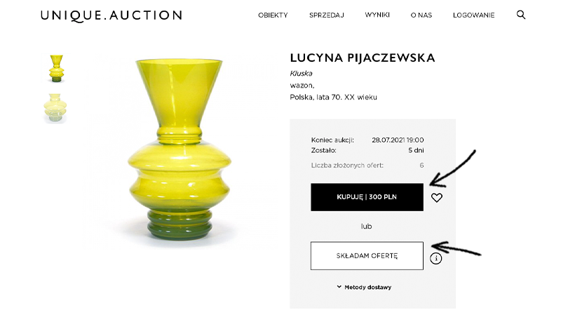 Każdy obiekt, dostępny na Unique Auction wystawiony jest na indywidualnej aukcji, dostępnej przez określony czas – najczęściej 3 tygodnie. W tym czasie można kupić obiekt za cenę katalogową lub złożyć ofertę.